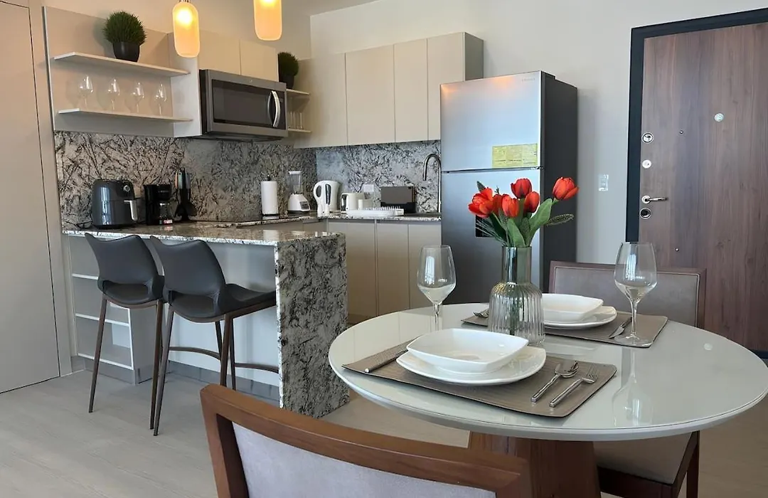 Willa Arcadia - Fully Servised 1 Bedroom Apartment - 1904 ma wyposażony aneks kuchenny z lodówką, piekarnikiem i szklanymi naczyniami. Goście mogą zjeść posiłek w restauracji Mercao Restaurant, w niewielkiej odległości od willi w Panamie.
